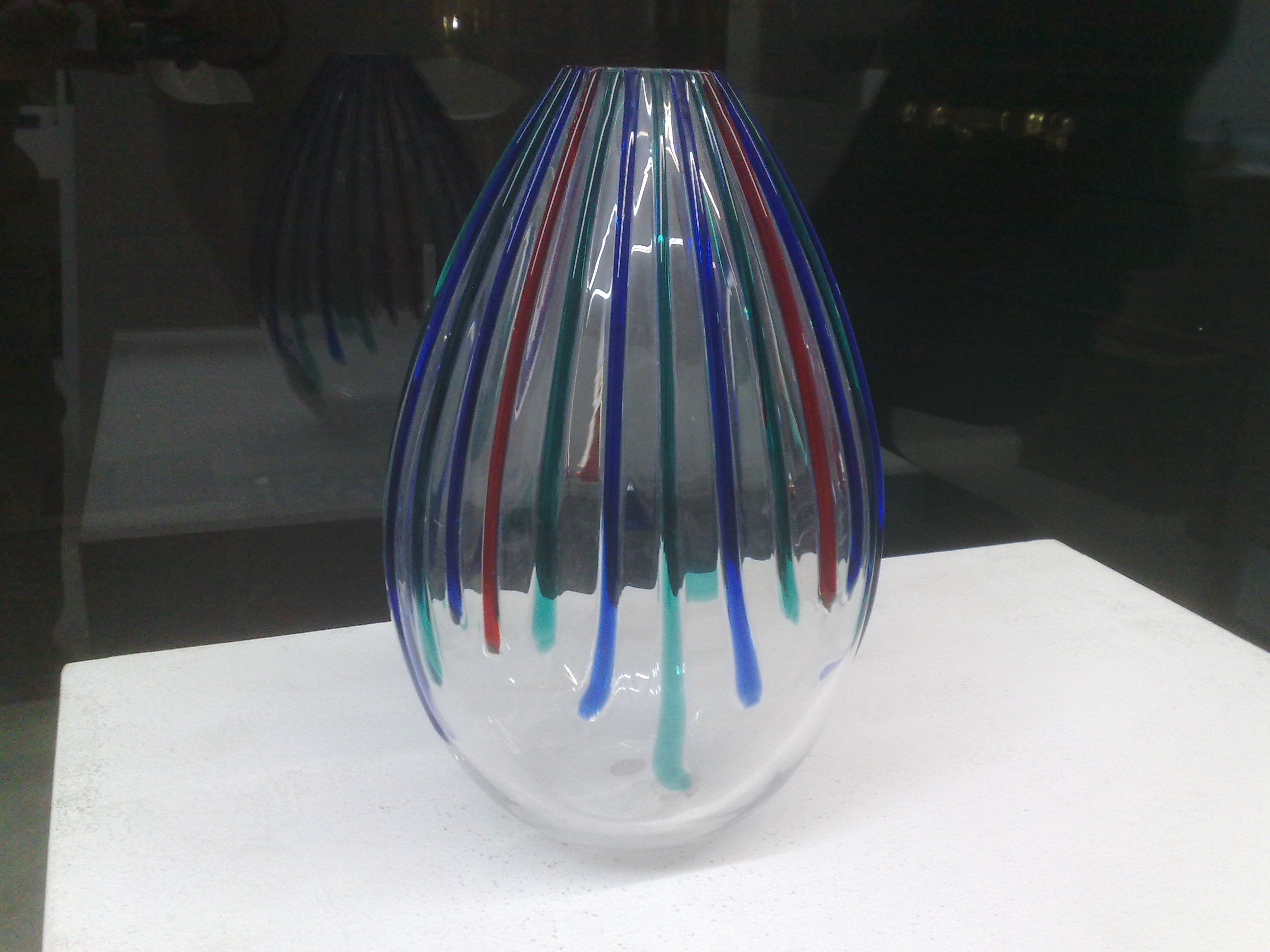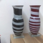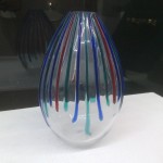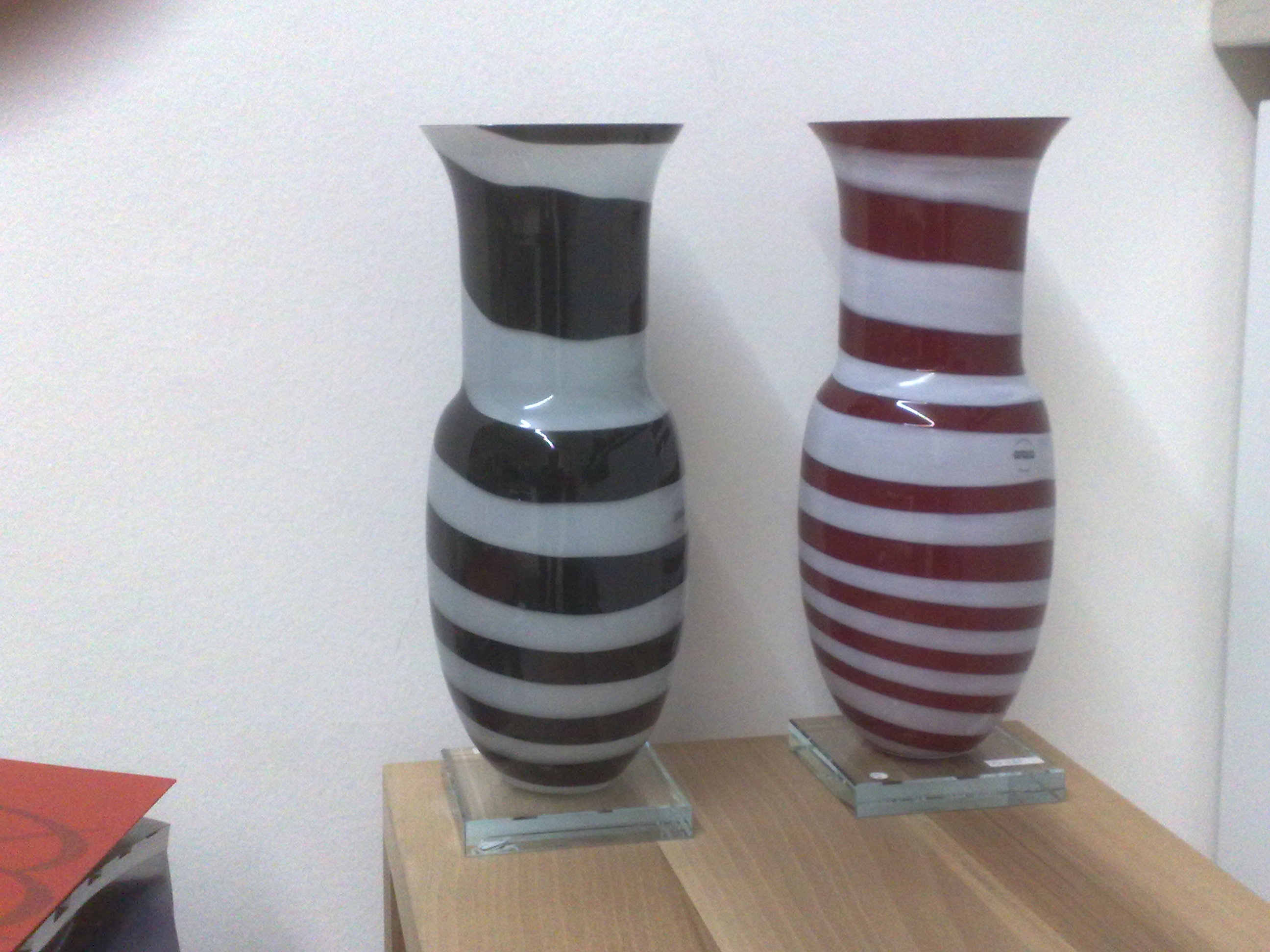 VASO in vetro soffiato di Murano di MURANO.COM rosso con righe bianche della collezione “Collezione 2012″ in serie limitata : 285 euro VENDUTO